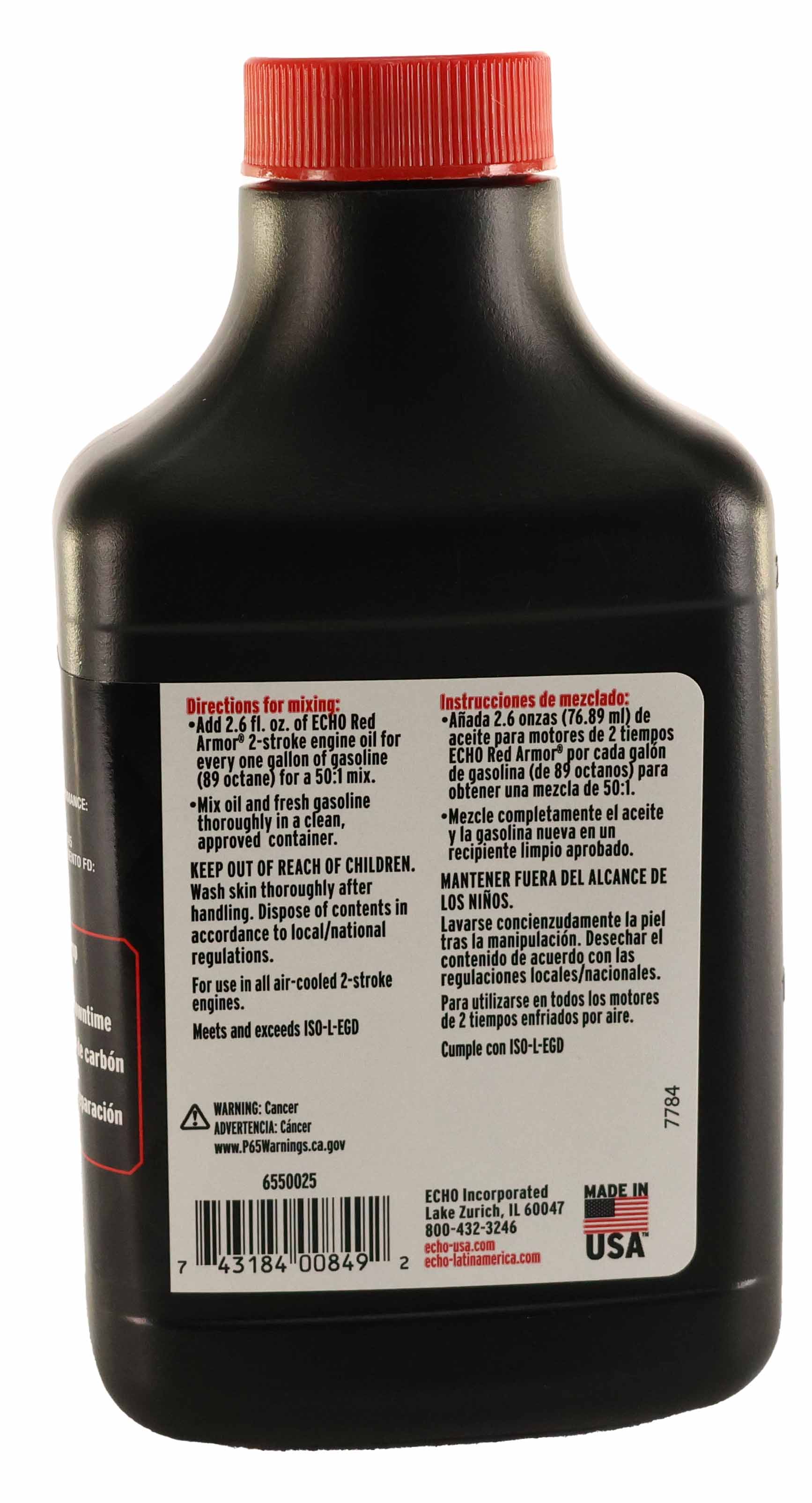 The Echo 6550025 Red Armor 2-Cycle Engine Oil is a premium semi-synthetic blend, specifically formulated for 2-stroke or 2-cycle engines. This high-performance oil is engineered to deliver superior cleaning and protection against harmful carbon build-up that can rob your engine of power and efficiency. From the first use, the powerful detergents in Red Armor engine oil start to remove performance-robbing carbon deposits without sacrificing lubrication or film strength, ensuring your engine remains clean and operates efficiently over time. The blend comes in a 6.4 fl oz bottle, which is ideal for creating a 2.5-gallon mix at a 50:1 ratio when combined with gasoline, making it a practical choice for various outdoor power equipment needs.